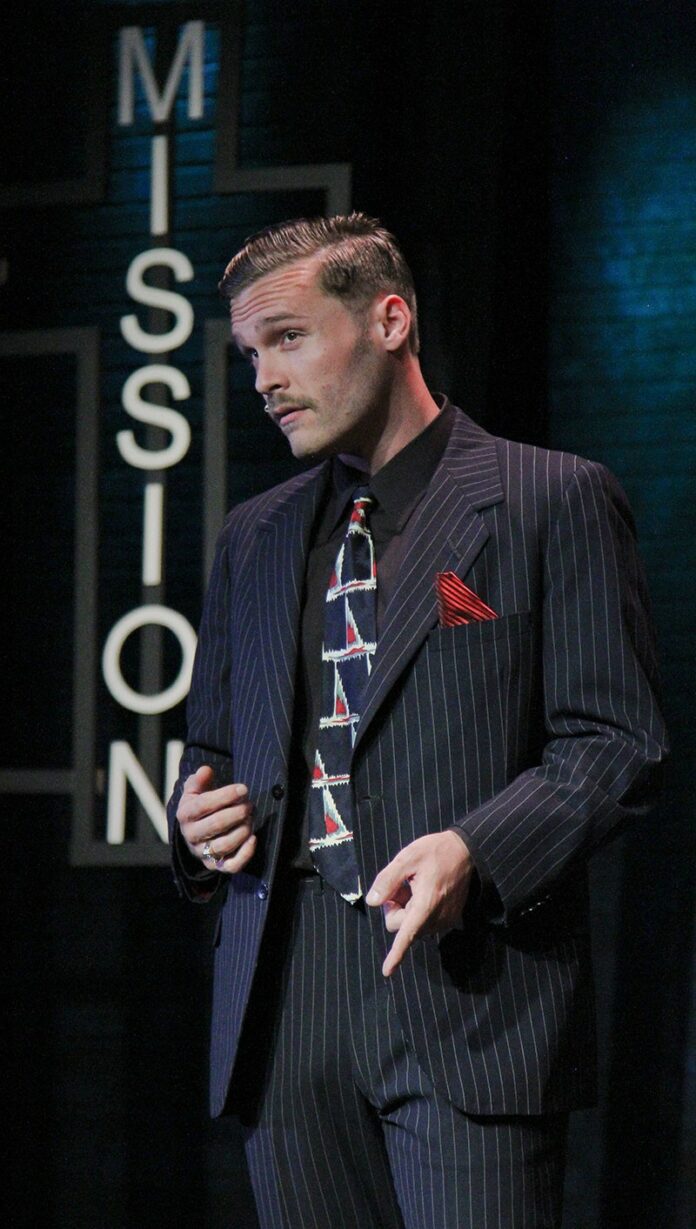 Nathan Detroit (Ariel Zuckerman) runs the “oldest, established, permanent floating crap game in New York,” but police pressure is making it difficult to find places to house it. The only willing host wants a thousand bucks, which Nathan ain’t got. When word gets out that big-time gambler Sky Masterson (Ezra Hernandez) is in town, Nathan figures he can finance his game by getting him to make a sucker-bet that Nathan can’t lose. Nathan bets Sky he’ll be unable to get Sarah Brown (Elenor Paul), the leader of the newly opened Save-a-Soul Mission, to go away with him for an evening.