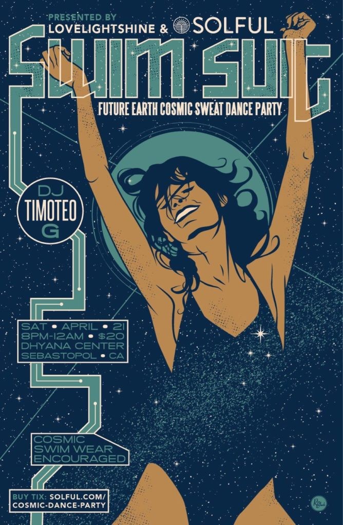 Sonoma County’s newest cannabis dispensary, Solful in Sebastopol, is getting to know the community the best way they know how: they’re throwing a party—a Swim Suit Cosmic Dance Party, to be exact. The shindig encourages partygoers to dress in aquatic or sweat gear, and features modern dance music from across the globe presented by DJ Timoteo Gigante, whose west Sonoma County production company, Love Light Shine, co-hosts the event. Get to know Solful and dance the night away on Saturday, April 21, at the dhyana Center, 186 N. Main St., Sebastopol. 8pm. $20. solful.com.