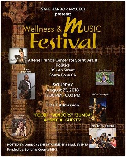 Local nonprofit organizations the Arlene Francis Center and Safe Harbor Project are all about fostering and promoting wellness in the community, and this weekend the groups team up for the annual Wellness & Music Festival. The daylong outdoor affair features upbeat and affirming live performances from songwriters like Christopher Alexander, LaRoy Wainwright, Tony Saunders, Dana Salzman, AhSa-Ti Nu, and neo-funk band None But the Righteous. Wellness vendors, food and zumba sessions are also on hand when the festival kicks off on Saturday, Aug. 25, at the Arlene Francis Center, 99 Sixth St., Santa Rosa. noon to 6pm. Free admission. 707.528.3009.