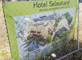 The sign says one thing, but the facts say another—and raise a question: Will construction on the much-anticipated Hotel Sebastopol ever begin?