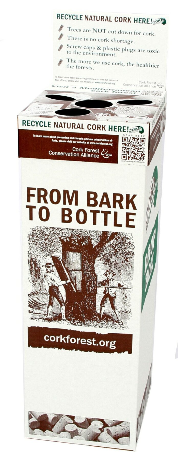 1 percent, says Spencer, as they don’t want to appear to be lobbying for the industry. “Our primary purpose is not recycling the cork, but preserving the cork forest.” Spencer explains that cork plantations rank highly in biodiversity—Cork Forest even runs eco tours to Spanish cork-producing regions. Each cork absorbs nine grams of carbon “bark to bottle,” according to Spencer, who says the manufacture of alternative enclosures made from aluminum or plastic leads to more environmental cost than is acknowledged by those who tout them.
