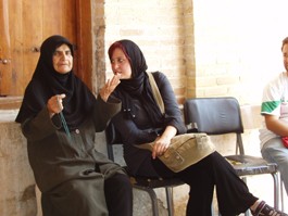 CULTURE, COMFORT: American student Christina Torns (right) listens to a ticket seller outside a mosque in Shiraz.