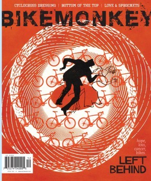 See what they did there? See how they changed it, so that it fits a magazine called Bike Monkey? See how they’re not trying to pull one over on anybody, but slyly tip the hat to a master? (Like Antioch Arrow did with their stenciled Man With the Golden Arm-inspired LP?)