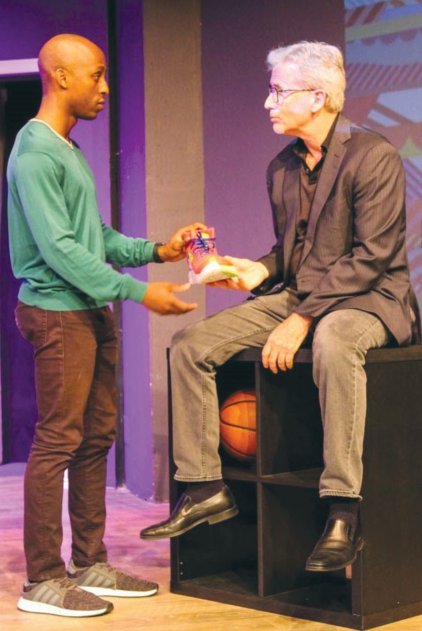 Lights up on the office of Davis Tallison (Mike Pavone), the white president of a company that makes footwear “by black people for black people.” Thomas Hodge (Trey G. Riley) is there to unveil his latest design and is aghast to learn that sales of the 16s have exploded in the white youth community since the shooting. Tallison announces the new 17s will now be marketed to them. Hodge is furious that something he created for “his people” has become bastardized, and seeks retribution.