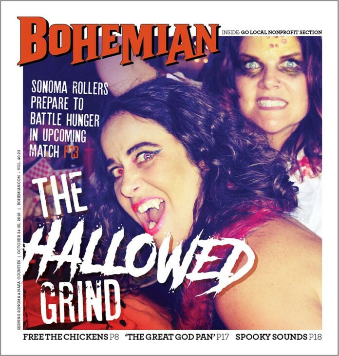 It should be a good one. The theme of the latest SCRD match is “Harvest,” and when the NorCal Vigilantes square off against the Ol’ Derby Bastards—the North Bay Bruisers will also do battle with the Wine Country Wreckers—well, know that there’s also a food drive underway under the lights of Grace Pavilion, just in time for Thanksgiving. Donations will be accepted at the match (doors open at 4pm) for the nonprofit Redwood Empire Food Bank.