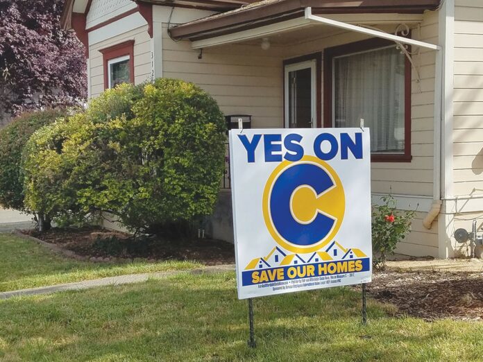 According to the mailers, “major funding” for the “No on C” effort came from the statewide California Association of Realtors Issues Mobilization PAC and Woodmont Real Estate Services, a big property-management firm with offices in Sacramento, Belmont and Santa Rosa.