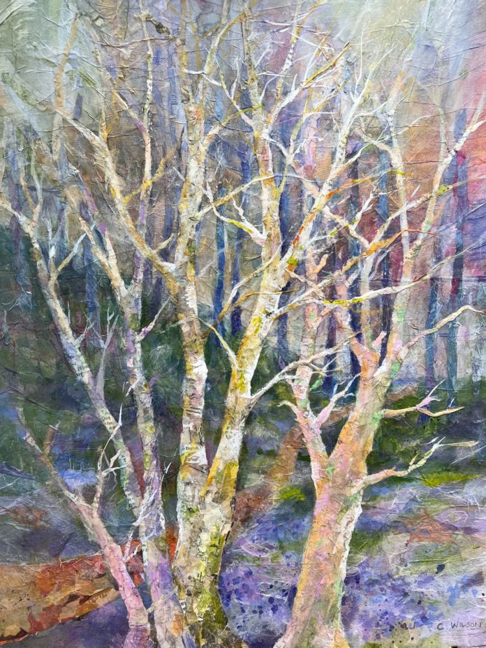 Sonoma County artist Carolyn Wilson presents Branching Out, a multi-media collection celebrating the strength and beauty of trees. Inspired by Kahlil Gibran’s words, “Trees are poems that earth writes upon the sky,” Wilson’s textured collages layer rice and tissue paper to create intricate surfaces that evoke movement and depth. Works like “Dreaming of Bluebell Woods” and “Barefooted” highlight the organic forms and essential presence of trees in the natural world. A reception with Wilson takes place 4-7pm, Saturday, April 4, at the Upstairs Art Gallery in Healdsburg, offering an opportunity to meet the artist and learn about her inspirations. She will also be hosting in the gallery on April 4 and 17 from 11am to 6pm.
