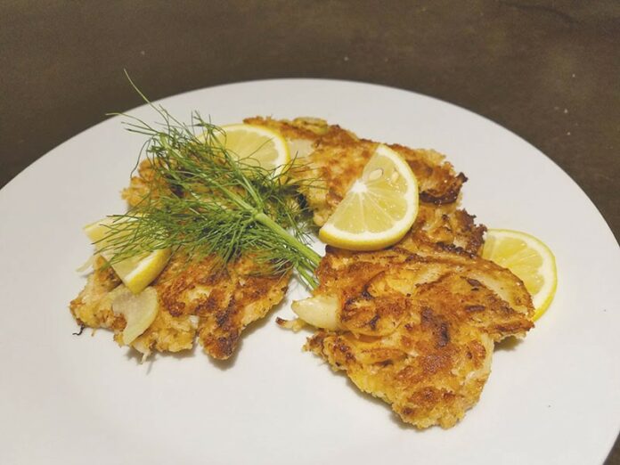 Form into 10 patties. (You’ll probably cook these in two batches.) Heat half the butter in a heavy skillet until bubbles have disappeared. Fry about three minutes or until golden brown. Carefully flip and repeat. Add the rest of the butter and cook remaining cakes as above.
