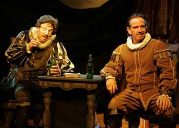 Based on a mostly forgotten bit of nautical history, Drake’s Drum examines an actual conversation that, according to ships records, took place between Francis Drake (just prior to his becoming a “Sir”) and his friend and second in command Thomas Doughty. While attempting to circumnavigate the globe, Drake put Doughty on trial for sedition, mutiny and practicing black magic. After achieving a guilty verdict and sentencing Doughty to death by beheading, the captain invited his former best friend to his quarters for a “sumptuous feast” of corn chips, french fries, McDonald’s hamburgers, Gummi worms, pizza and beer—at least that’s what they eat in this giddily surreal imagining of what took place between Drake and Doughty during Doughty’s last meal.
