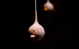 The only fine art gallery in the United States devoted to crematory objects, Funeria actively seeks out and encourages artists to embrace the subject. Among those who have really thought on the topic is English designer Nadine Jarvis. Reflecting life’s chaos, Jarvis crafts feeders made of human ash, seed and suet that are gradually devoured by wild birds. She puts human ashes in ceramic eggs that hang from a thread made to break—when and where being as unknown as death itself is guaranteed—smashing the vessel to the ground and scattering the ashes. Jarvis also creates pencils from human ashes—one person being roughly equivalent to 240 writing utensils—with a special sharpener that returns the ashes as shavings to the pencil box.