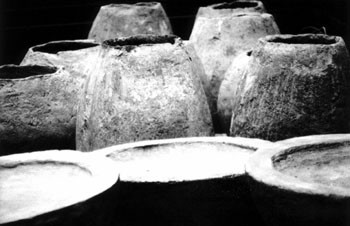 Similarly, with what can perhaps be called a diptych, Holmes and Wilson have created two 48-inch water-retaining tables meant to be placed side by side titled Bread and Water. Atop one rests a woven hemp blanket alongside inert loaves of cement bread. “There’s political content in this piece,” Holmes admits. “Bread and water are the basic things we need to get by. The hemp is the First World/Third World conflict we’re in. The Islamic people want to live in the time of Mohammed; this mystifies Americans, but I understand–it comes down to the beauty of raw ingredients. We’re such addicted materialists.”