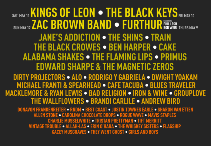 Confirmed acts for Friday, May 10 include the Black Keys, Alabama Shakes, Flaming Lips, Dirty Projectors, Andrew Bird, the Shins, Blues Traveler, Tristan Prettyman, Vintage Trouble, Flagship, Justin Townes Earle. and Allah-Las.