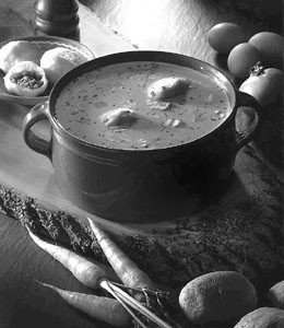 This time of the year, Sebastopol painter William O’Keeffe favors the beef and Guinness stew of his Irish homeland. “Flour beef chunks and sauté them lightly to seal them,” he advises. “Chop up lots of onions and caramelize those in butter with fines herbes. Place the whole lot in a nice heavy pot, add a can of draft Guinness–never use Guinness stout in a bottle, it’s too bitter. I generally use a can and a half and then drink the rest. Bring the whole lot to a boil, let it simmer until the meat is tender. Then add a teaspoon of dry English mustard like Coleman’s and a pinch of sugar to taste. Let it simmer. Then prepare a massive pan of mashed potatoes with no cream; they have to be dry, because the liquid from the stew is what softens them, and serve over the potatoes.”