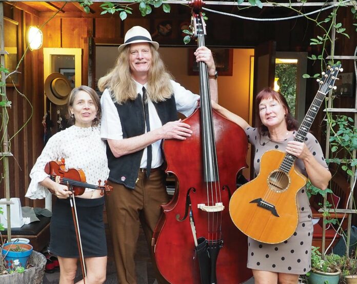 The trio is made up of kindred musical spirits Anita Bear Sandwina on fiddle, mandolin, guitar and Banjolin, Megan McLaughlin on guitar and mandolin, and Tom Kuhn on upright bass.