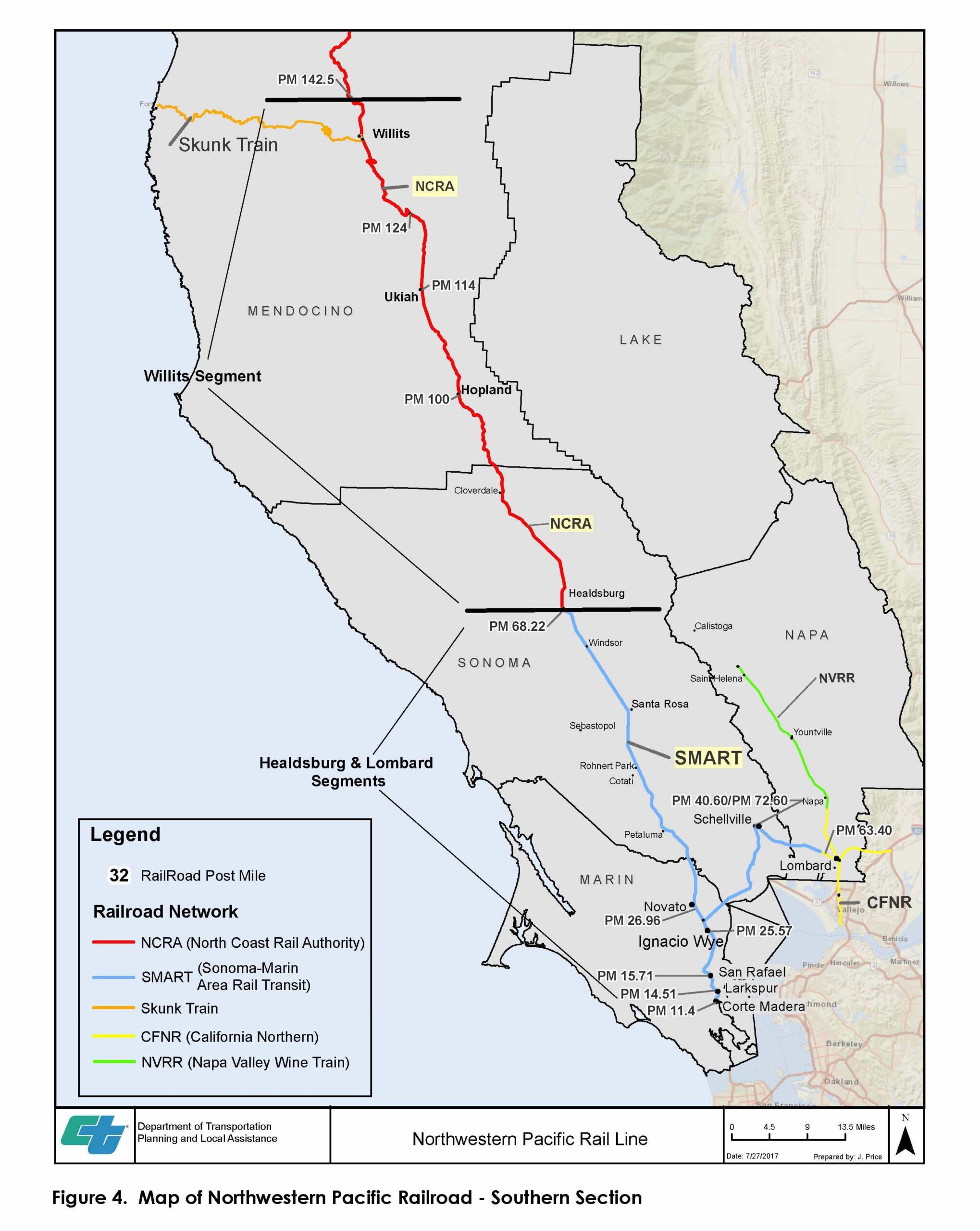 In early 2018, State Senator Mike McGuire introduced legislation to transform much of the 300 mile long railroad right of way into a bike and pedestrian trail dubbed the Great Redwood Trail, running from Larkspur to Humboldt Bay.