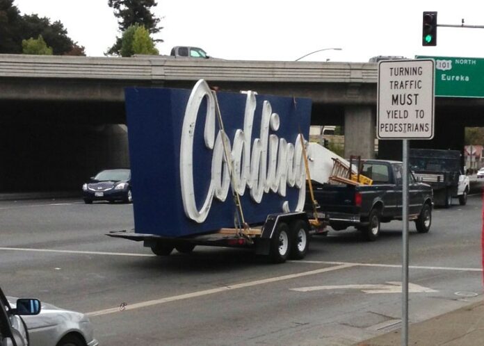 Here’s something you don’t see every day, courtesy quick-thinking Bohemian reader Brian Keegan: The world-famous Coddingtown sign on the back of a truck, rolling down College Avenue.