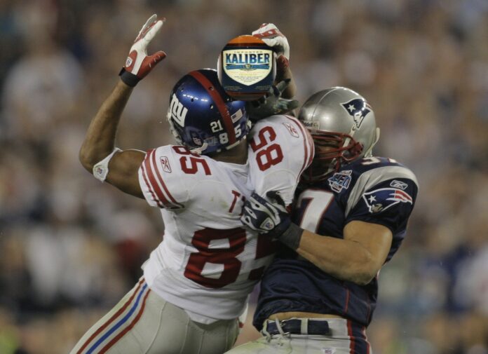 That Super Bowl was memorable for “The Catch,” the most insane pass play in the history of the game: Eli Manning to David Tyree, deep in the fourth quarter. Tyree somehow trapped the ball on his helmet and kept a fourth quarter drive going that would end in Victory! Victory! Victory!