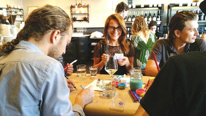 Lani Yadegar, a relationship coach, was one of the attendees. “It was so fun to let myself be messy with my creativity, be prompted by great questions and eat good food with good people while doing that,” she says.