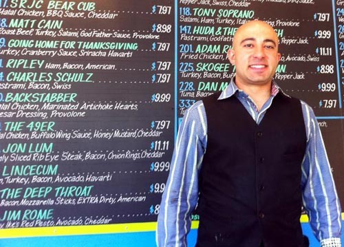 What’s truly new are a few of Ike’s sandwiches that are making their debut here in Santa Rosa. There’s the ‘Adam Richman,’ which Ike and Adam designed on Man vs. Food: “It’s a fried chicken cordon bleu, ham, honey, pesto, avocado. I really like that one,” says Ike. Also new is the curiously named ‘Don’t F with Elvis Kieth’ (“Elvis Kieth,” misspelling and all, was Ike’s high school nickname), the ‘Huda and the Jillyfish,’ the ‘Dan Marino,’ and the ‘Scogee the Caveman.’