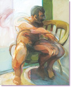 Having apparently married the influences of two of the titans of 20th-century art in his canvases, Ballaine suggests that such a union, perhaps, is the best way of breaking through to the new. Diebenkorn, after all, owed a debt to Matisse; Bacon, to Velázquez and van Gogh. Assuring that the reproductions in his catalogue don’t do the paintings justice, Ballaine reflects simply, “Basically, my show is suggesting a contemporary way of looking at the human figure or looking at the figure as it exists today, in the environment in which it exists today.”