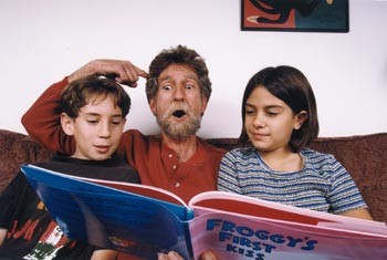 London Calling: Graton children’s author Jonathan London animates one of his own stories for Sean London, 11, and Leah Engel, 10.