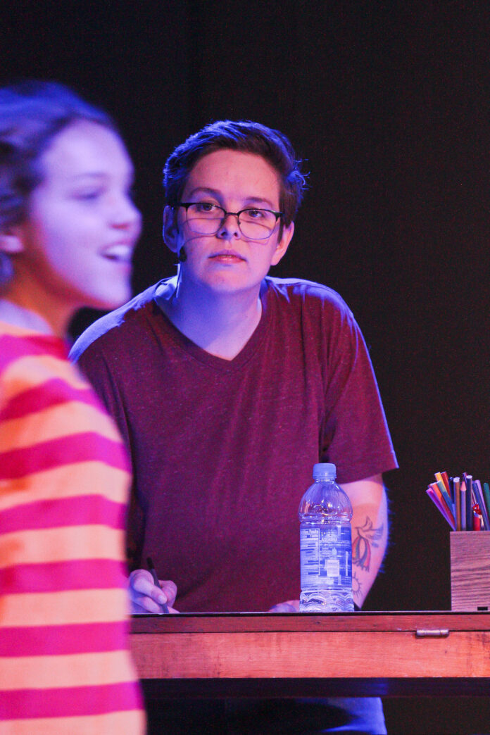 Adult Alison (Emily Jansen-Adan) sits at a drawing board as she attempts to caption the illustrations representing significant moments in her life from childhood through the present. The show is nonlinear, so recollections of Alison as a child (Addison Sandoval) are intermingled with memories of Alison’s time at college (Rae Lipman). Her relationship with her father Bruce (Anthony Martinez) is the thread that connects it all together. Bruce is emotionally unstable due to a lifelong inability to deal with his own sexuality that’s exacerbated when Alison finally becomes comfortable with hers.
