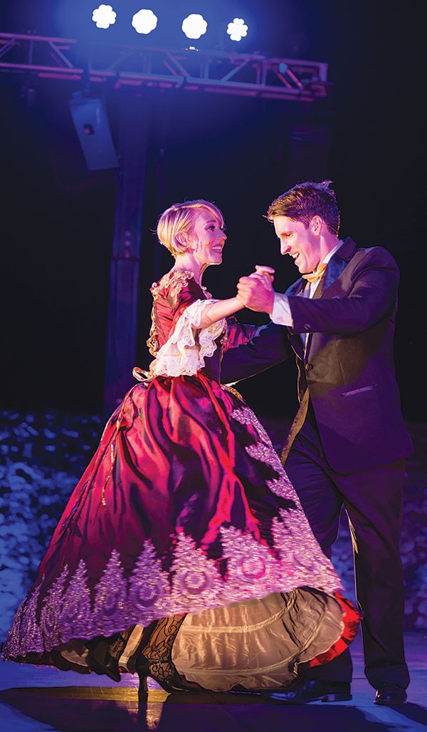 Act two features dancing set to numbers from a diverse group of artists ranging from Janelle Monáe (“Tightrope”) to Madonna (“Vogue”). The evening’s most visually striking moment comes courtesy of a tango-infused production of the Police’s “Roxanne” from Moulin Rouge with the winery ruins bathed in red.