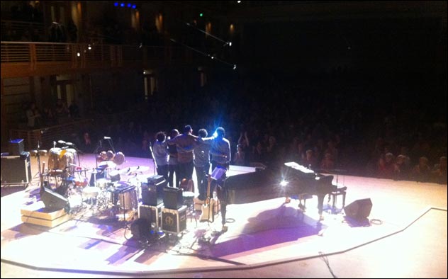 It’s only too bad the fire was lost in the sound mix, because the Green Music Center really does have incredible acoustics. Want proof? During a soft duet tonight between Valdés and Perellada—bowing an arco bass—a man in the crowd let out a very loud, very sustained belch.