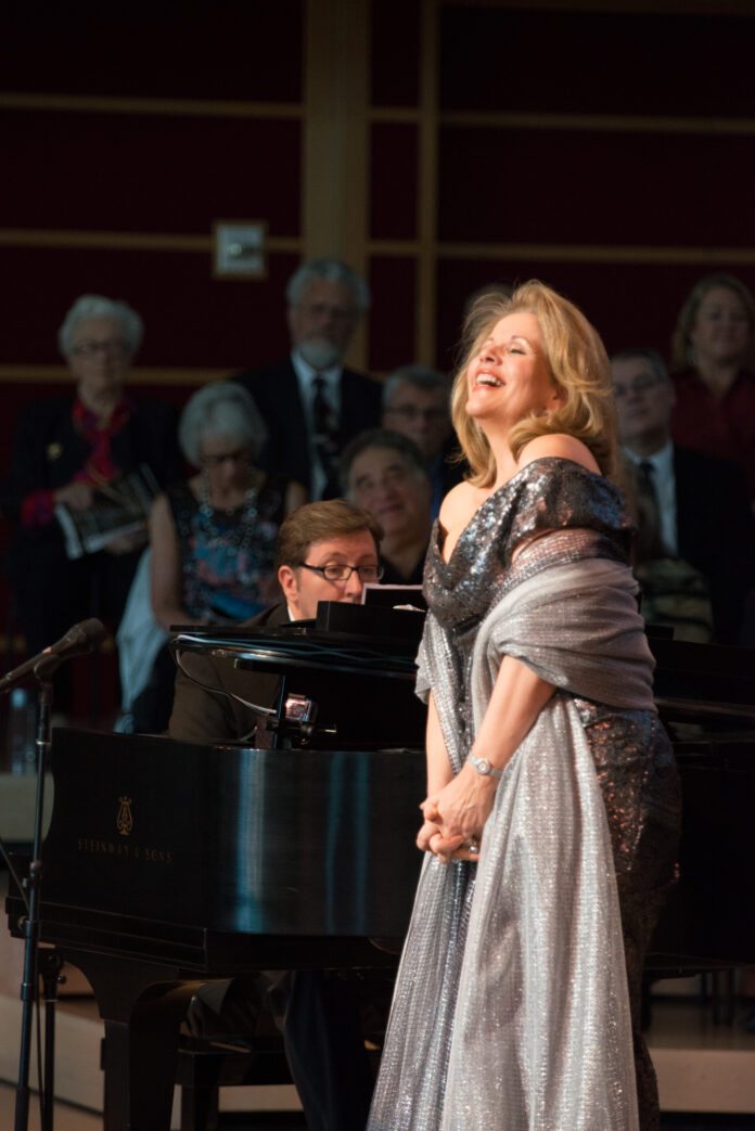 The program included classical pieces by Handel, Canteloube, Delibes, Korngold, Cilea, Puccini, Zandonal, Johan Strauss II and Richard Straus, whom Fleming called her “desert island composer.” Her performances of the latter composer’s work were especially touching, in part because he wrote such beautiful music for the soprano voice, but it was apparent that she was moved by it beyond notes on a staff. A section folk tunes, including a medley of “The River is Wide” and “Shenandoah” and a performance of “Wild Horses” by folk artist Jean Richie, ended with a powerful rendition of “We Hold These Truths” by J. Todd Frazier, a slow, stirring piece with text from the beginning of the Declaration of Independence.