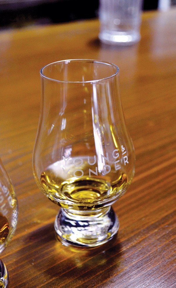 One way local craft distillers get noticed is by touting their “grain to glass” process, in contrast to outsourcing the base spirit. But bringing in grain-neutral spirit helps a business get up and running with less overhead, Opatz explains. Young & Yonder plays it both ways, bringing in booze for their vodka ($30) and re-distilling it six times, but making small batches of bourbon ($45) from their own mash bill.