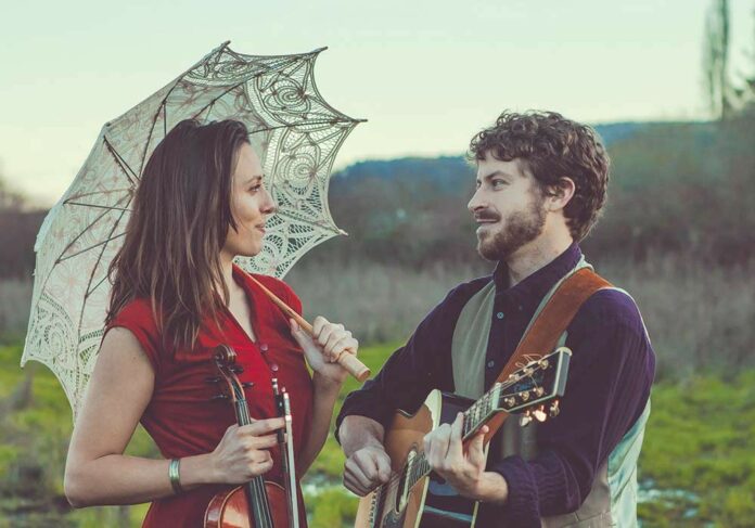 The voices of Benson and Pascoe blend like gypsy souls who’ve found a home in each other’s musical arms. They met at an open mic night in a Northern California living room on Halloween night, 2017. Benson was dressed as Rosie the Riveter in bright red lipstick; Pascoe, in cheetah pants, saw her sing to a rapt, silent room. As the party wore on, they both got out their fiddles and started jamming on Celtic tunes. The rest is history, as they now live and create together from their home in San Rafael’s Gerstle Park neighborhood.