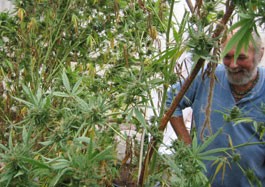 I notice a baby-food jar with a few green marijuana seeds inside. Bear is a grower of the old school, as are many hereabouts. He breeds his own seed, sometimes with his own male plant (grown indoors where it can’t sow any wild oats), sometimes swapping boughs ripe with pollen with the neighbors. He has been growing in these parts for many years, from the early days of the marijuana boom, through the years and years of the annual federal reign of terror called CAMP, or the Campaign Against Marijuana Planting, into the peaceful present.