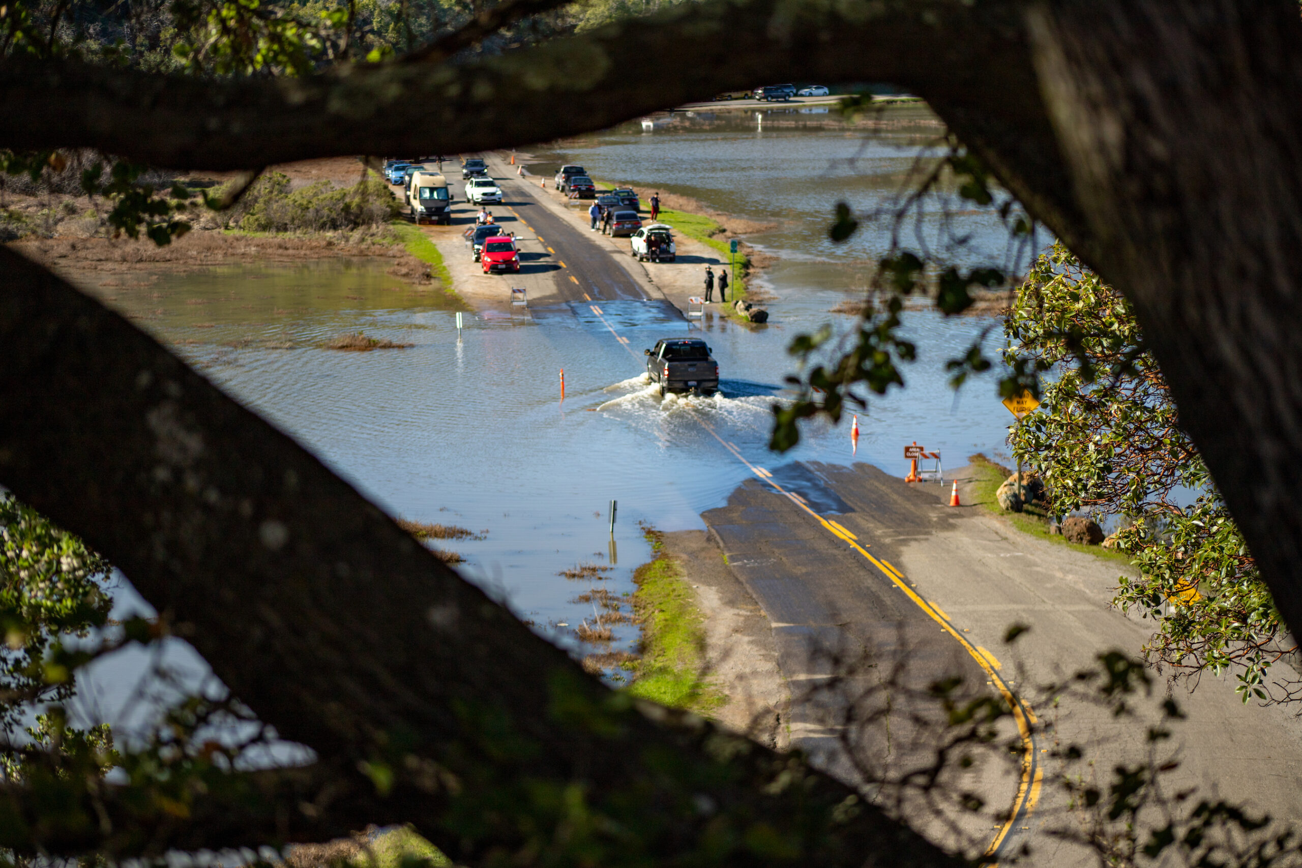 Gesturing to the flooded section of North San Pedro Road below, Dr. Stuart Siegel, the director of the San Francisco Bay National Estuarine Research Reserve, said, “With sea level rise, this will happen a bit more often. It’ll be a little deeper each time—a little more of the road will flood—and, instead of an hour or two, it will be underwater for three or four hours.”