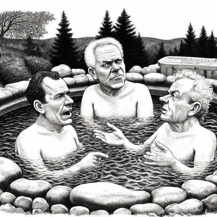 There were two men in the hot pool with me: One was a middle-aged white man like myself; the other, hoary, wiry and regal in the manner of a mad Shakespearean king.