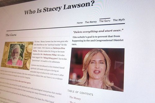 Andersen insists the whole project has only cost $205, circumventing the requirement for an FEC filing, and says the site has been “purely voluntary.” However, expect feathers to be ruffled by the fact that Andersen was Susan Adams’ campaign manager from August 2011 to the beginning of April 2012. “I left for a variety of personal and political reasons,” he says in the post. “I want to state clearly that the Adams campaign had no knowledge of my activities with the ‘Who Is Stacey Lawson?’ website.”