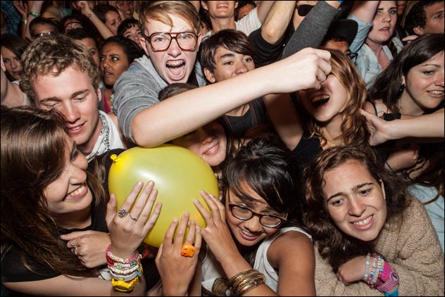 I am sure there are some sad, awful scenes going on up near the front involving overdoses, sexual abuse and barfing. Further back is where I plant myself, taking in the entire Hellman Hollow and the way it’s transformed. Strobes and lasers cut through the natural fog at a seizure-inducing rate, thrashing over a gelatinous blob of humanity. There are 50 people who’ve climbed on top of the bathrooms. The music is visibly coursing through people’s bodies, transforming them into vessels for a thousand different frequencies.