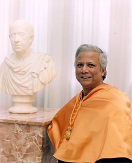 In 2006, Yunus won the Nobel Prize “for efforts to create economic and social development from below.”