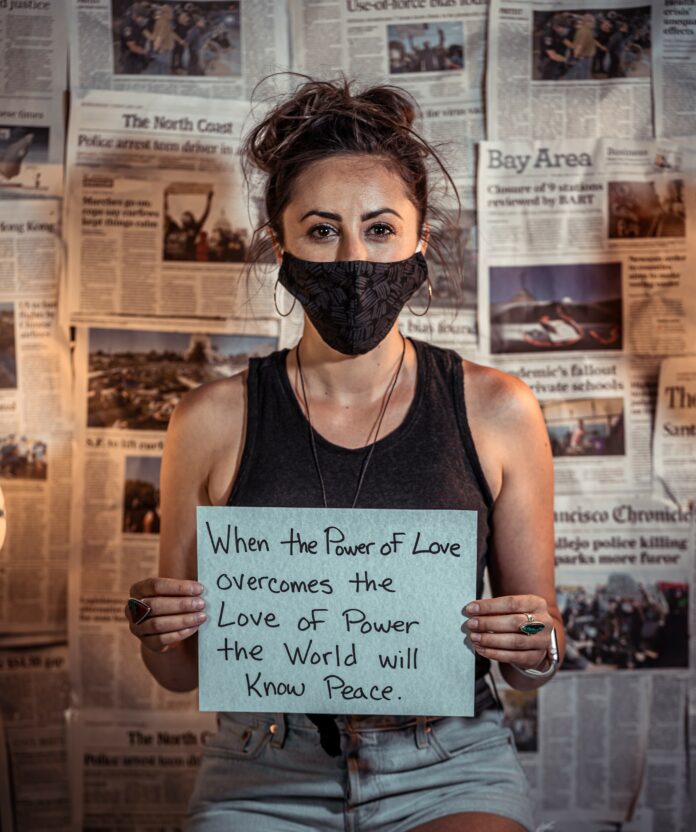 Now, Sonoma County-based FTA (For the Art) Productions–formed by actor Carmen Mitchell and photographer Marcus Ward–is offering an additional way for locals to participate in these demonstrations with a Peaceful Protest Portrait Project.