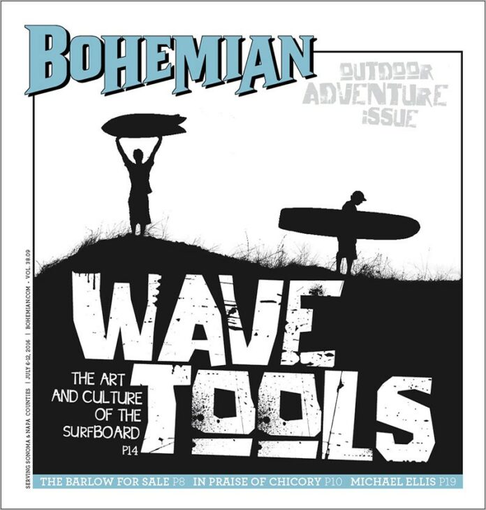 Talk about history coming full circle—the original Bolinas Surf Shop, which opened in 1963, is now hosting an exhibit devoted to the history of surfing in Bolinas. That history is largely shot through with the efforts and presence of Eric “Buzz” Besozzi who made North Bay history when he opened the shop; it was the first of its kind north of the Golden Gate Bridge. Buzz now runs a screen-printing clothing shop just a few doors down from the museum on Wharf Road, not far from the town’s iconic beach, where you can still make out a “Naked Surfing Area” street sign and where rare is the day that someone’s not out there in the surf.