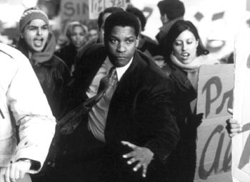 Get me out of here: Is that Denzel Washington fleeing the set of The Siege?