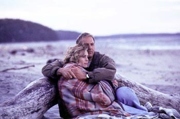 As for the movie that Kramer has just gleefully derailed, it’s Message in a Bottle, based on a book by Nicholas Sparks. A harried working woman from Chicago (Wright Penn) yearns to find her one true love. She discovers a tide-tossed bottle–it’s pale blue–containing a gloriously passionate love letter, full of pain, longing, regret. She falls in love with the writer, based only on the intensity of his passion. She tracks him to the Outer Banks of North Carolina. He (Costner) turns out to be a shipbuilder. His wife died. He’s very sad. He writes letters to his dead wife. He puts them in bottles. He thinks he will never love again. In walks the woman from Chicago.