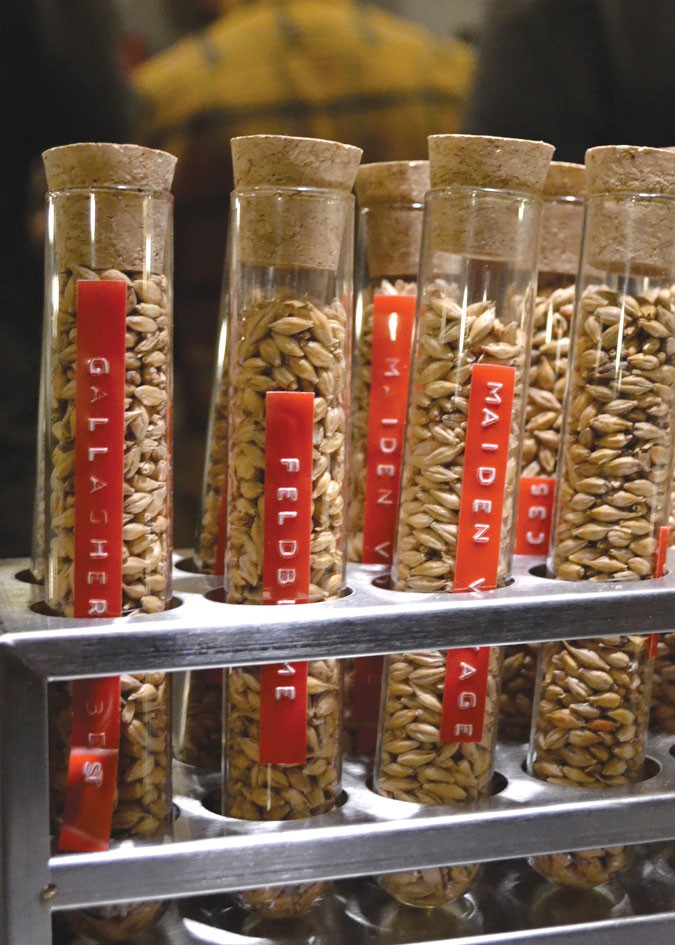 And what are those flavor components? It’s a tough question, the maltsters admit, as malt aroma and flavor profiling is a new field even among the experts. You’ve got to taste it—in beers like Russian River Brewing’s fresh and grainy Key Grip pale ale and Lagunitas Brewing’s Spawn of Kashmir imperial pale ale, which is Lagunitas-strong at 8.0 percent alcohol by volume, but turned down a notch in hop volume compared to many Lagunitas products, with a creamy, though not too sweet, malt profile that hints of caramel and a fruity red apple skin note. Black Sands’ Oil as Embers coffee milk stout, this one from a new brewery in Lower Haight, is the kind of thick, delicious brew that our