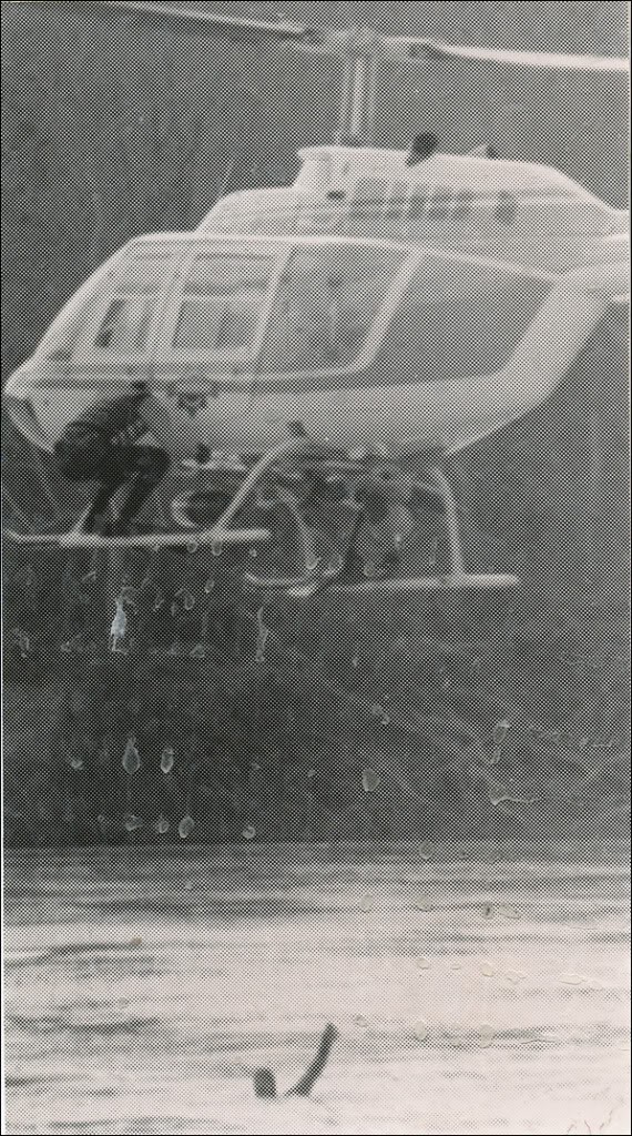 Or is it? Does anyone remember helicopter rescue training during the flood? Or could this photo be a legitimate rescue?Let us know in the comments below.The Guerneville Flood Project is a week-long dive into the photo archives of the North Bay Bohemian. Read about the project here, and view more 1986 Guerneville Flood photos by clicking here.