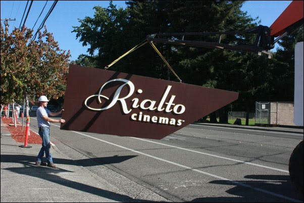 Boyd joined a small group on the sidewalk. On the roof, a worker removed the last bolt, and in the tractor, another turned the key and pulled a lever. The Rialto Cinemas sign levitated from the mansard roof, hanging on the crane arm, and then gently descended from the building. Cars slowed. A jogger ran past. A young girl across the street waved. The sign came to the ground. The theater officially no longer belonged to the Rialto, and Burch put his arm around Boyd, who turned and buried his head in his shoulders.