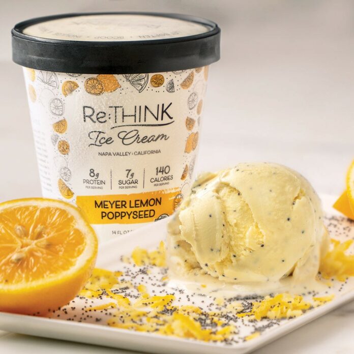 I first tasted ReTHINK Ice Cream for a Healthy Lifestyle at a trade show, where I discovered and sampled the flavors Vanilla Supreme, Lemon Poppyseed and Turmeric Ginger. Along with well-balanced flavors—I was most impressed by the creamy texture—the mouthfeel was just right. And, I didn’t miss the sugar. The flavors were bright, and instead of the sometimes-cloying ice cream experience, this version allowed the flavors to shine without the heavy sweetness. Instead of sugar, they use agave syrup as a sweetener, and whey protein and green tea extracts are also in the mix to improve the nutritional value of ReTHINK Ice Cream.