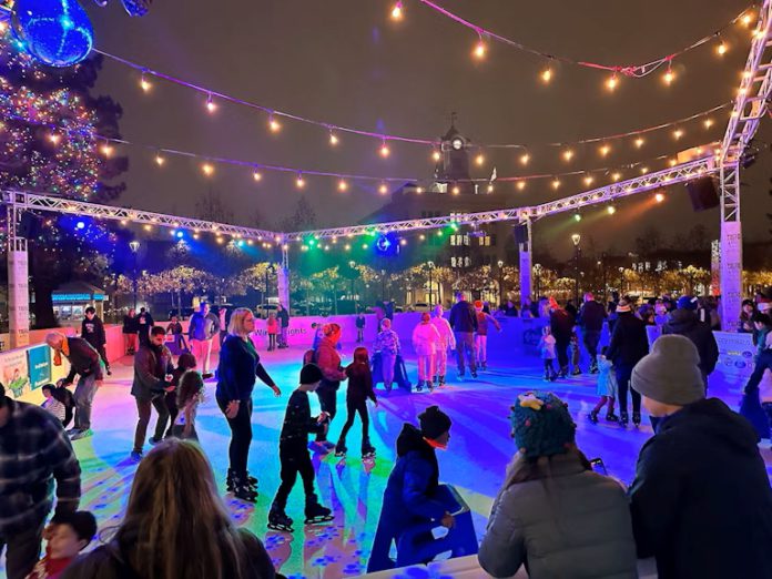 This holiday season, downtown Santa Rosa has a sustainable touch of festive magic, as the Santa Rosa Metro Chamber recently brought back its synthetic ice rink for the annual Winter Lights celebration. The eco-friendly rink is now open in Old Courthouse Square, designed for family fun and a bit of seasonal sparkle, through Dec. 31.