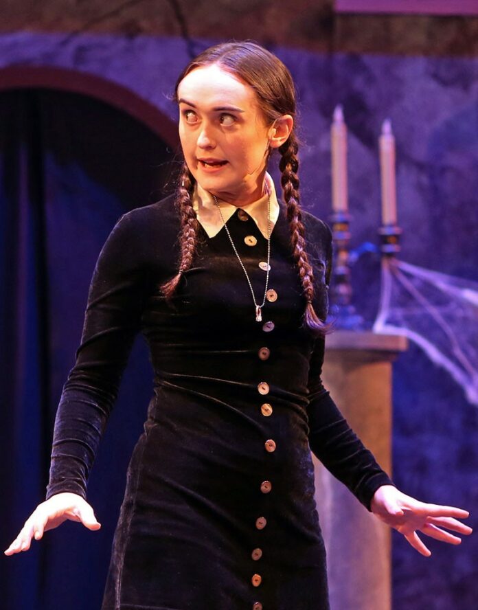 Uncle Fester (Erik Weiss) narrates the show and lets the audience know it’s gonna be a love story. A teenage Wednesday Addams (Emma LeFever) is worried about bringing her “normal” boyfriend/fiancé Lucas (Cooper Bennett) and his straight-laced, Midwestern parents (Larry Williams, Morgan Harrington) home to meet her unconventional family. Wednesday lets her father Gomez (Peter Downey) in on her marriage plans but gets him to agree not to reveal her intentions to her mother, Morticia (Serena Elize Flores), until an announcement is made at dinner. Things don’t go as planned.