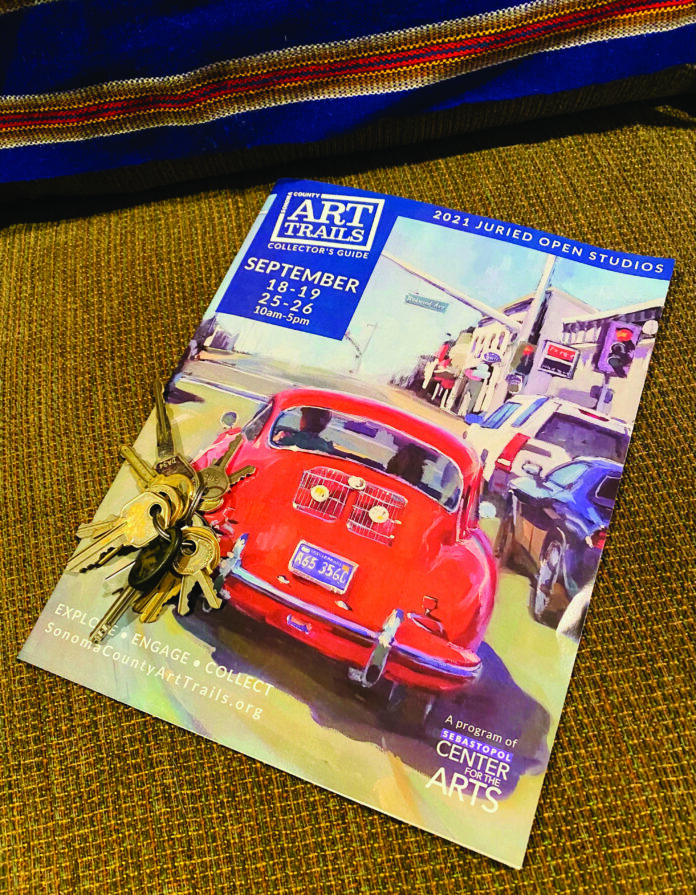 WIlson’s own mixed-media paintings are inspired by nature. A self-taught artist, she discovered the combined mediums of collage and watercolor about 20 years ago. Her art will be displayed in her spacious backyard at the upcoming Art Trails, and visitors will have access to the inside workings of her studio and be able to learn about collage. Wilson “look[s] forward to meeting people who are curious to learn how and why we artists do what we do, and appreciate this event showcasing the wealth of talented artists we have in Sonoma County.”