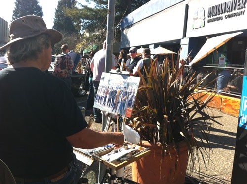 “You know what? Screw it. I’m tired of painting at the beach. I’m tired of painting beautiful coastal sunsets. I’m tired of painting rolling golden hills, and lush green vineyards, and mountainside streams. I’m a Sonoma County painter, dammit, and I’m gonna paint a bunch of people waiting in line to drink beer.”