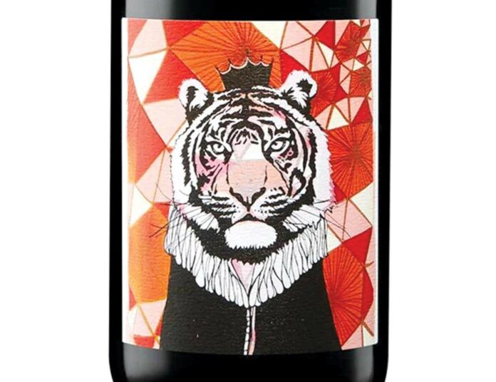 I usually sip this fine, complex red while ensconced on a couch at La Dolce Vita Wine Lounge but alas, sheltering in place precludes me from doing so. Fortunately, the proprietor makes her stock available for no-contact pick-up outside the Petaluma wine lounge at a discounted retail price (about $25). Brilliant. So here we are and this is where the eerie synchronicity begins: On the back of the wine’s tastefully appointed label is an image, one that draws its inspiration from Dada, Surrealism and Pop Art (my holy trifecta), and one that also suddenly took on added resonance—yep, it’s a tiger.